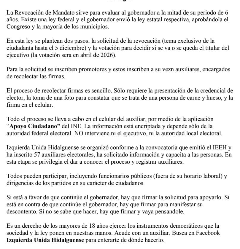 Qué es la Revocación de Mandado para el gobernador de Hidalgo y cómo participar