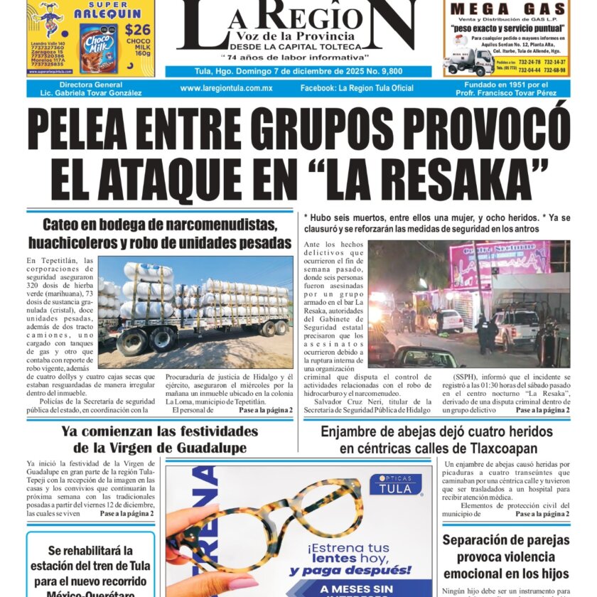 El periódico LA REGION, con 74 años de ediciones ininterrumpidas es el medio comunicación de mayor circulación en Tula de Allende, Hgo., Mex.
