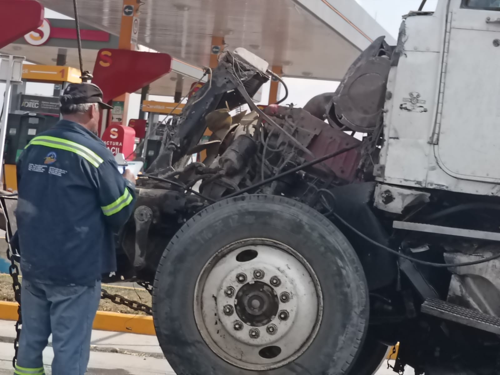Policías de la Secretaría de seguridad pública del estado de Hidalgo y elementos de protección civil y bomberos de Tula de Allende se presentaron este miércoles por la mañana a la altura de la gasolinera en donde un camión de volteo se vio involucrado en un choque contra una pipa que afortunadamente iba vacía.