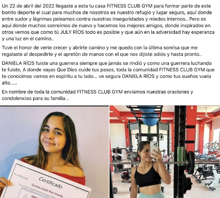 como nutrióloga y ofrecer asesorías en un gimnasio. En sus cuentas oficiales, compartía su satisfacción por el cambio de ciudad y su entusiasmo por comenzar una nueva etapa profesional. La joven tenía tan solo 24 años de edad al momento del homicidio.