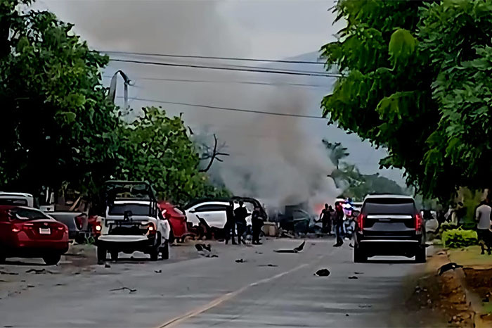 ATACAN CON EXPLOSIVOS A LA GUARDIA COMUNITARIA DE COAHUAYANA, MICHOACAN; UN MUERTO Y 10 HERIDOS.