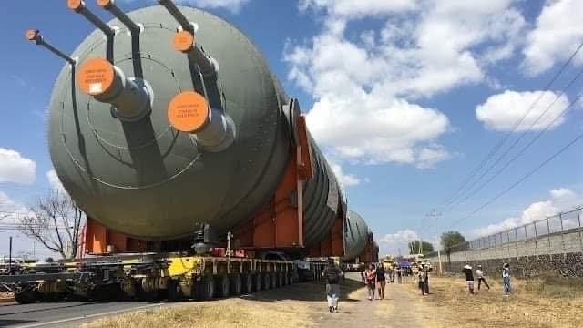 El traslado de los reactores de realiza en una pesada unidad que avanza despacio y su destino final será Pemex.