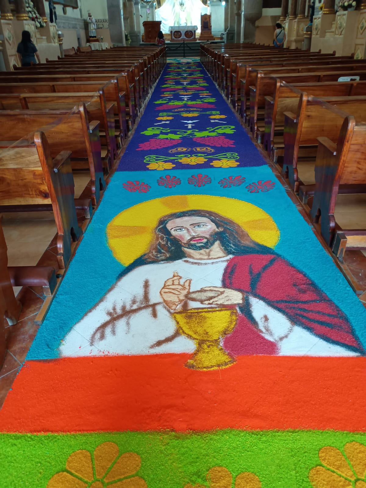 Este hermoso tapete fue realizado por artesanos del municipio.