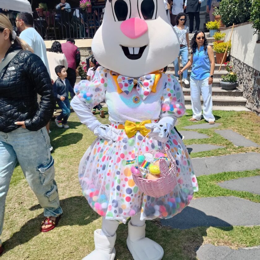 En otra foto se aprecia la conejita del Día de la Pascua y también a un grupo de mujeres que dieron regalos a los niños en este día especial para los católicos.