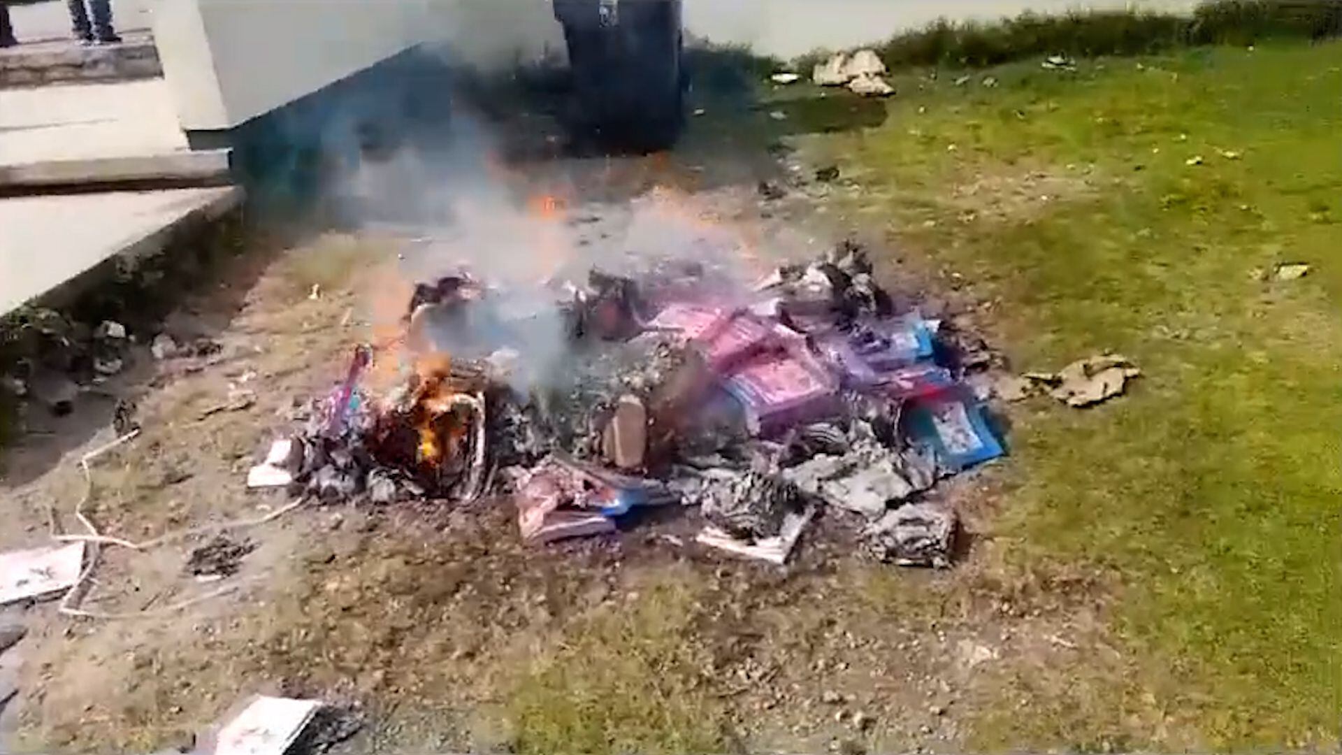 En Chiapas queman libros de texto de la SEP (Captura de Pantalla)