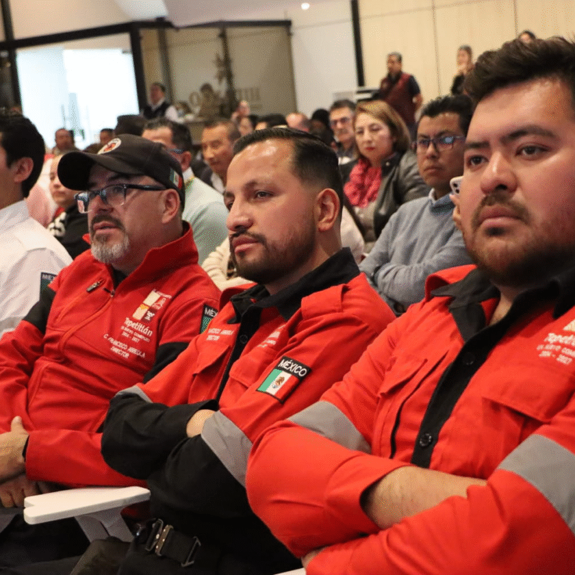 En el ámbito de capacitación, se impartieron 82 talleres sobre primeros auxilios, brigadas, combate de incendios, búsqueda y rescate, guardianes de protección civil y sistema de comando de incidentes, además de la participación en congresos y certificaciones especializadas como el Programa Hospital Seguro, cursos de rescate en espacios confinados y formación CERT en el Centro Nacional de Prevención de Desastres (Cenapred).