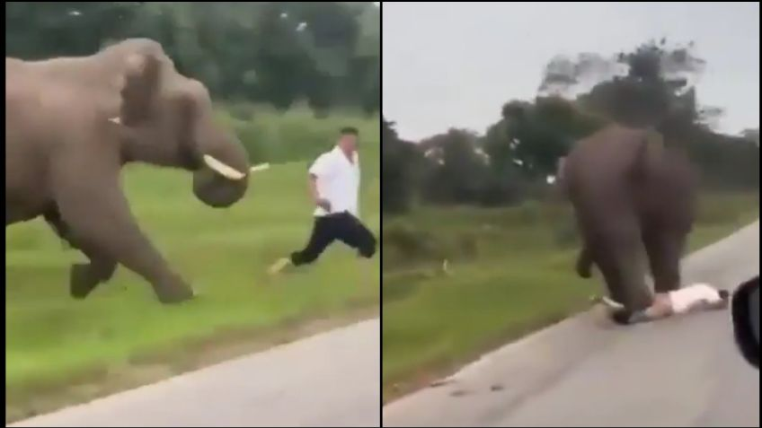 La primera reacción del paquidermo fue violenta, tras sentir a la persona cerca de su cuerpo comenzó a la defensiva y comenzó a perseguirlo, el hecho captado en el video de celular graba cuando el hombre se intenta alejar con velocidad y el elefante le persigue.