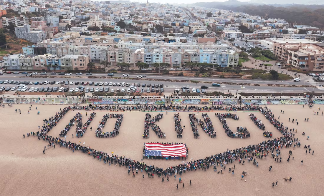 Las manifestaciones No Kings (Sin reyes) se desarrollaron en cientos de ciudades y tenían como objetivo contrarrestar lo que, según los organizadores, son los planes de Trump para alimentar su ego en su cumpleaños y el Día de la Bandera. Enormes y bulliciosas multitudes marcharon, bailaron, tocaron tambores y corearon hombro con hombro en Nueva York, Denver, Chicago, Austin y Los Ángeles, algunas detrás de pancartas que decían No Kings. El evento de Atlanta, con capacidad para 5 mil personas, rápidamente alcanzó su límite, mientras miles de manifestantes más se congregaban fuera de la barrera para escuchar a los oradores frente al Capitolio estatal.