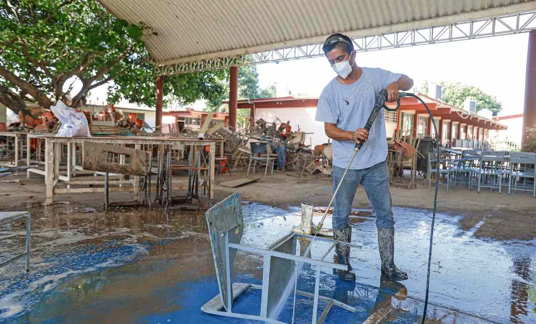 “Eso era lo más pesado, ahorita ya es lo más batallozo, que es lavar aulas, mobiliario, el que se pueda rescatar, porque el