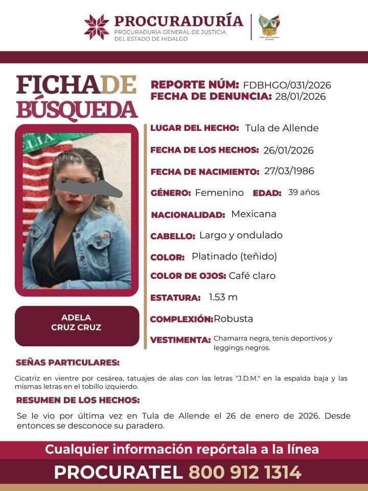 La mujer que era buscada por su familia, amigos y por el personal de la Comisión de búsqueda de personas desaparecidas del estado de Hidalgo, en coordinación con otras corporaciones de seguridad, fue localizada muerta y trascendió que presentaba huellas de violencia.