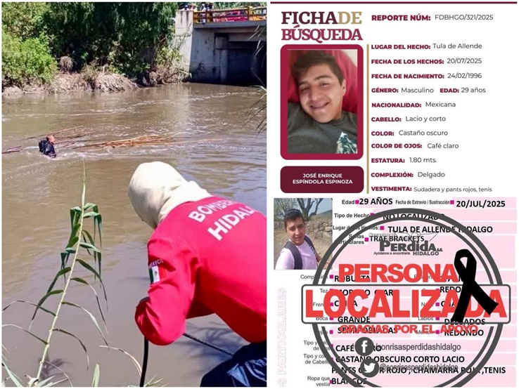 J.L.E.R. de aproximadamente 29 años de edad, fue localizado esta semana tras ser rescatado su cuerpo sin vida en un canal de aguas negras de la región Tula-Tepeji, mientras que su primo identificado de iniciales J.E.E.E. fue encontrado casi cuatro días después de que fueron levantados por los sujetos desconocidos.