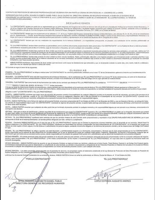 Profesionales, consecutivos y por 23 meses, que abarcaban de octubre de 2022 a mayo de 2024. Cada contrato estipulaba un pago bruto mensual de 35 mil pesos, sumando así la cifra que ahora genera polémica en la opinión pública