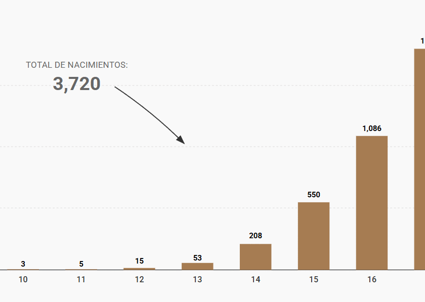 Es apenas la punta de la madeja. Esto representa solo el 8.1 por ciento de los 45 mil 835 partos en niñas y adolescentes registrados en este periodo. El promedio es de 25 casos de maternidad infantil al día, pero en 91.9 por ciento de los registros no hay información sobre el hombre responsable.