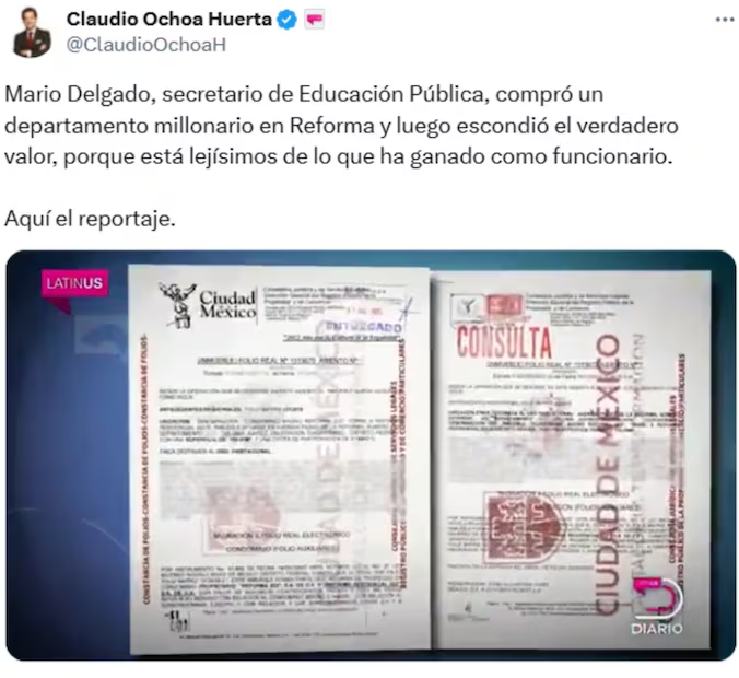 Luego que los periodistas Claudio Ochoa Huerta y Alberto Valiente revelaron que Mario Delgado compró un departamento en el número 222 de Paseo de la Reforma con un valor de 15 millones de pesos, pero en su declaración patrimonial aparece en con un valor mucho menor, 1.5 millones, el secretario de Educación Pública aclaró que fue «un error de captura«.