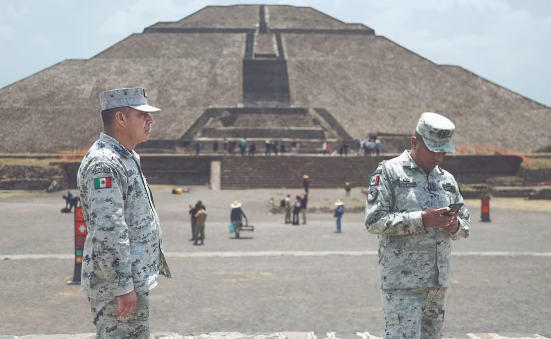 Dentro del sitio arqueológico operaron 60 guardias nacionales con armas cortas, respaldados por 69 custodios del Instituto Nacional de Antropología e Historia (INAH) y 16 efectivos de la Policía Auxiliar de la Ciudad de México. En el exterior participaron 150 elementos adicionales.