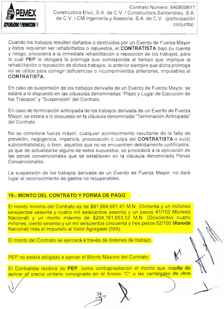 El último contrato con Pemex se firmó a finales de 2023 por 986 millones de pesos, para la construcción de oficinas e instalaciones de zona de pruebas en Tabasco.