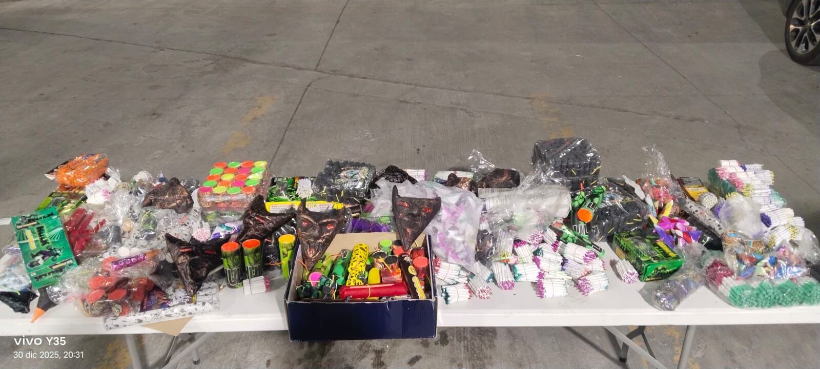 Como parte de las acciones realizadas, se concluyó el operativo con el decomiso de aproximadamente 25 kilogramos de pirotecnia de alto peligro, mismos que quedaron asegurados y bajo resguardo de Protección Civil.