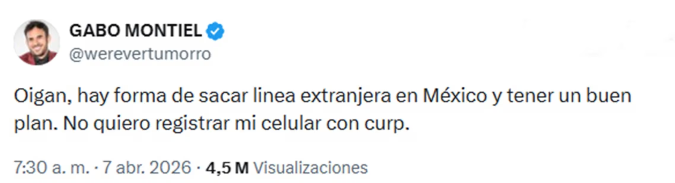 “Oigan, hay forma de sacar línea extranjera en México y tener un buen plan. No quiero registrar mi celular con curp”, aseveró.