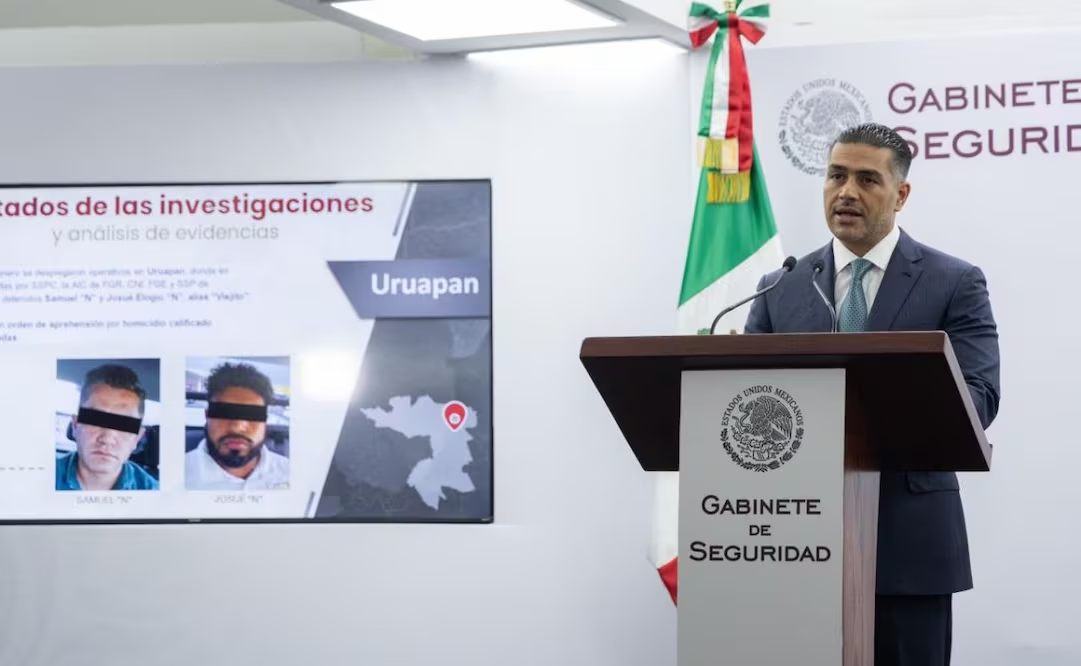 El secretario de Seguridad y Protección Ciudadana (SSPC), Omar García Harfuch, anunció este domingo la detención de dos sujetos más, presuntamente involucrados en el asesinato de Carlos Manzo, presidente municipal de Uruapan: Samuel “N” y Josué Elogio “N”, alias “Viejito”.