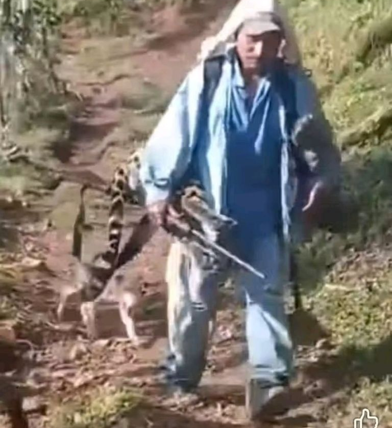 El video, con una duración aproximada de 24 segundos, muestra al sujeto descendiendo por la sierra acompañado de un perro. En su espalda carga el cuerpo sin vida de un jaguar, amarrado a una mochila, mientras en su mano derecha sostiene una escopeta de gran tamaño. Abajo lo espera otro hombre que al verlo llegar con el enorme felino solo decide que está hermoso y ríe cuando confirma que ya está muerto