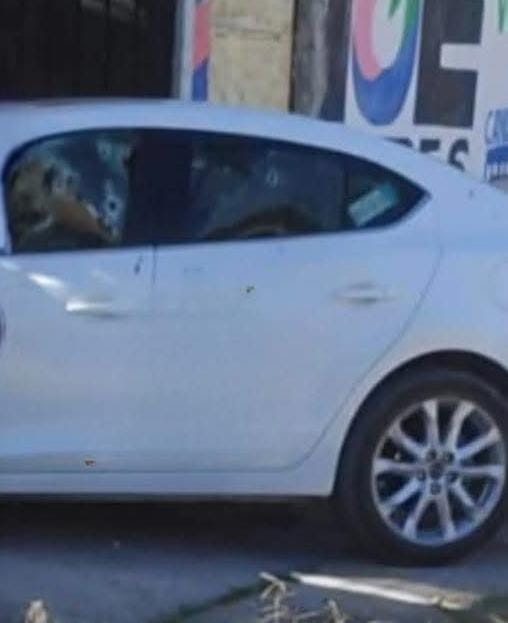 Los oficiales de diversas corporaciones de seguridad atendiendo el llamado, localizaron un automóvil Mazda de color blanco impactado contra un zaguán de color negro de un inmueble, corroborando que presentaba varios impactos de arma de fuego.