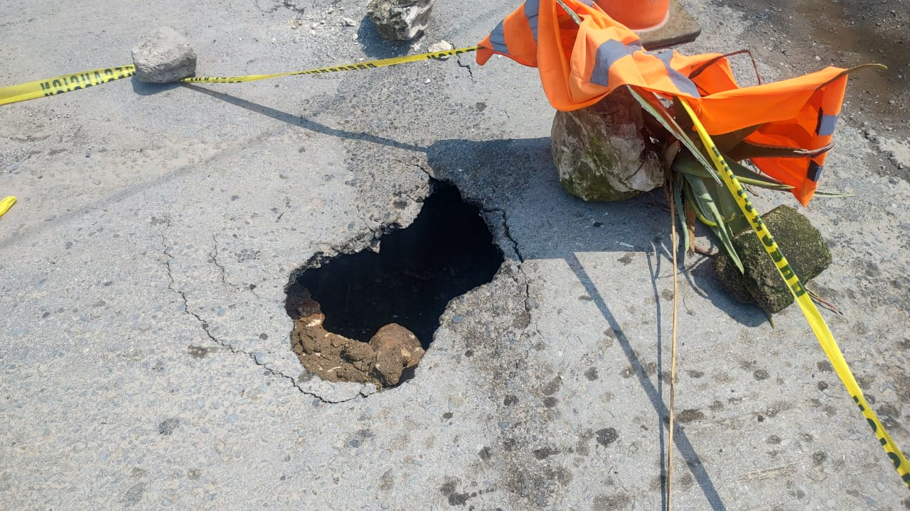 Tremendo socavón se generó en la salida de Tula hacia la refinería