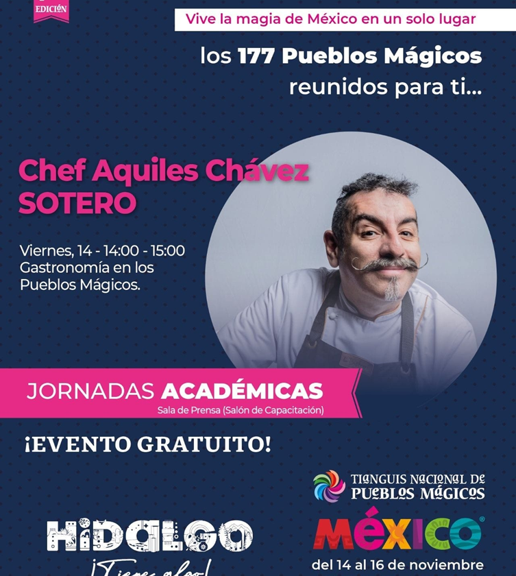 Bajo el sello Sotero Cocina de Oficio, el reconocido chef Aquiles Chávez dará inicio al programa el 14 de noviembre, con una charla culinaria que destacará la importancia de la cocina mexicana como motor de identidad y desarrollo local.