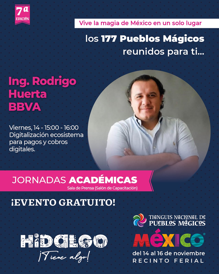 Ese mismo día, en el ámbito financiero, Rodrigo Huerta González, director de Inclusión Financiera & Partnerships en BBVA México, presentará la conferencia “Digitalización: ecosistema para pagos y cobros digitales”, donde abordará los nuevos modelos tecnológicos que fortalecen la economía del sector turístico.