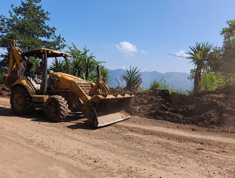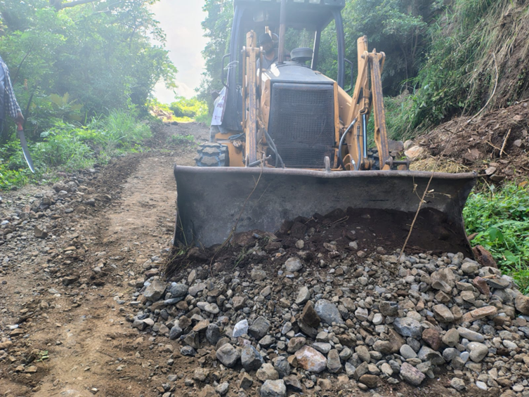 Xochicoatlán: Retiro de material producto de derrumbe en el camino rural Jalamelco–Texcaco, así como suministro de combustible para que la maquinaria siga trabajando.