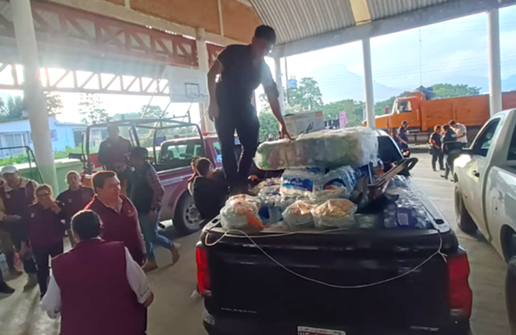 De manera paralela, se realizó la distribución de 200 paquetes alimentarios, canalizados por el Sistema DIF Estatal, a habitantes de Acuautla, Los Naranjos, La Esperanza y San Antonio, mediante una logística solidaria que involucró caballos, mulas, vehículos todoterreno y una cadena humana que cruzó el río para alcanzar comunidades de difícil acceso.