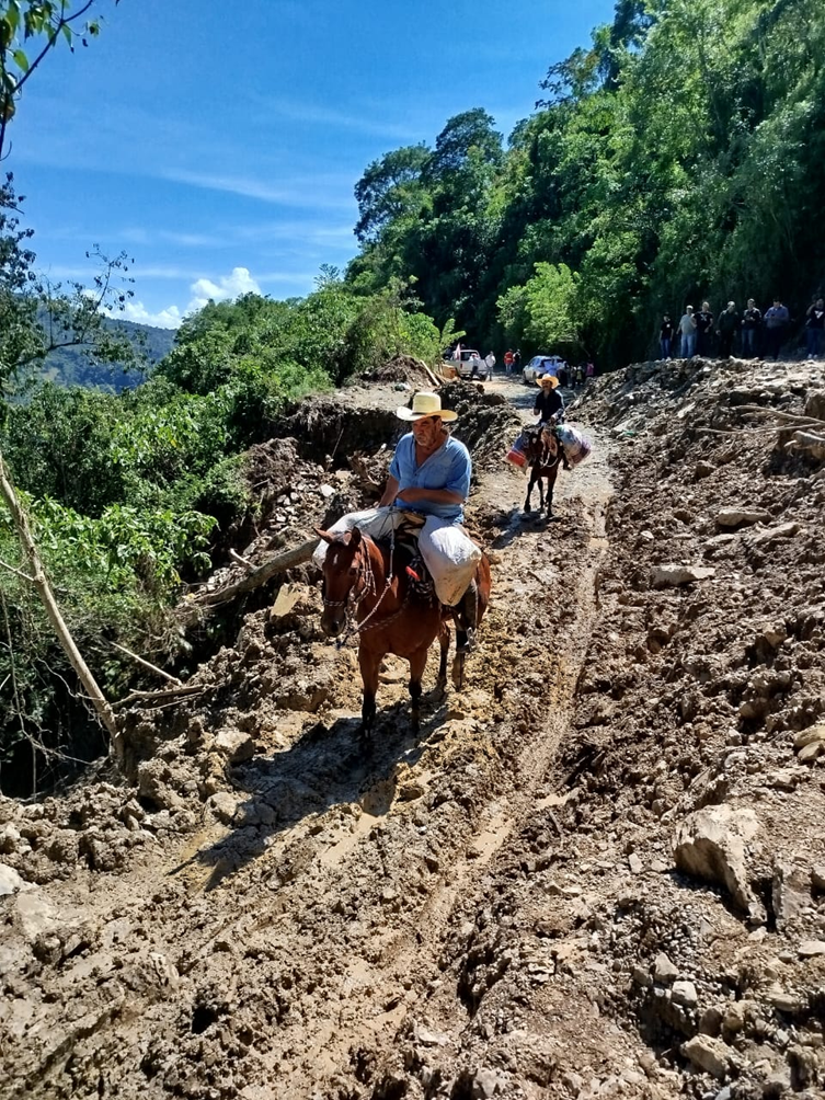 Pachuca, Hgo.- Con la finalidad de que ninguna familia afectada por las lluvias se quede sin víveres, personal de la Secretaría de Turismo del gobierno de Hidalgo, implementó el uso de caballos y mulas para entregar despensas en las comunidades de Acuautla, La Esperanza, Los Naranjos y San Antonio, todas del municipio de Huehuetla.