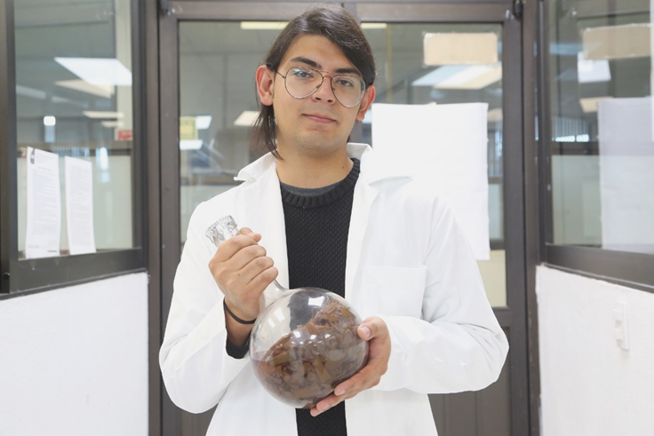 Saúl Godínez Hernández estudia cómo eliminar nematodos fitoparásitos, organismos diminutos que viven en el suelo y afectan principalmente a las raíces del tomate. Debido a que los productos comerciales usados para combatirlos suelen ser costosos y perjudiciales, su propuesta se basa en analizar compuestos de origen natural como alternativa más segura y accesible.