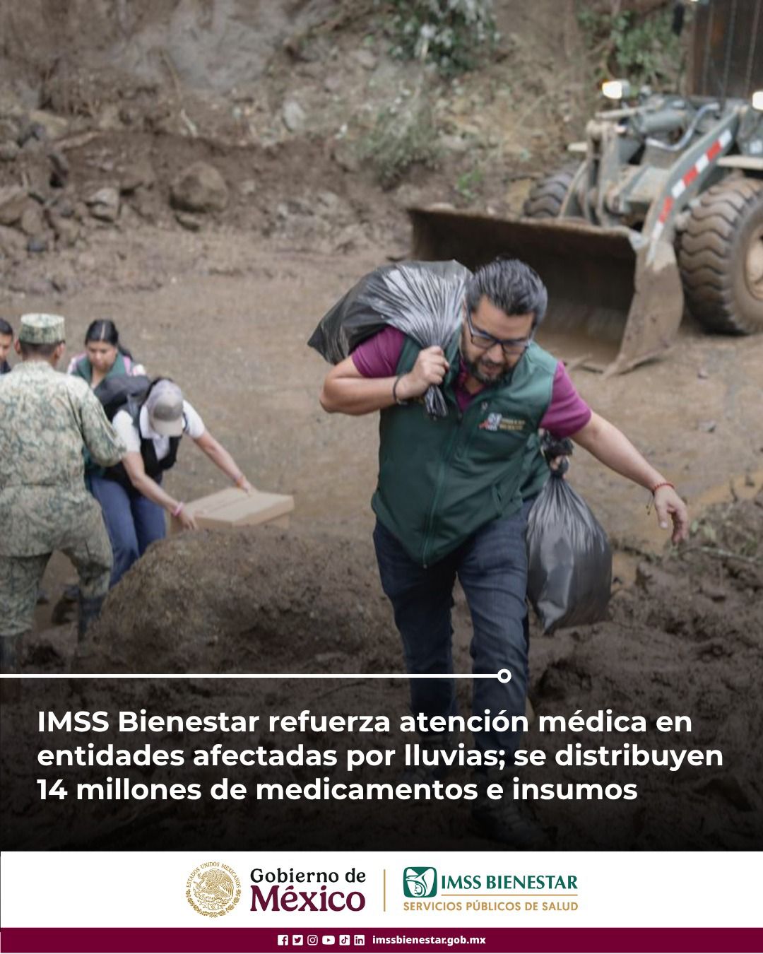 IMSS Bienestar refuerza atención médica en entidades afectadas por las lluvias; se distribuyen 14 millones de medicamentos e insumos