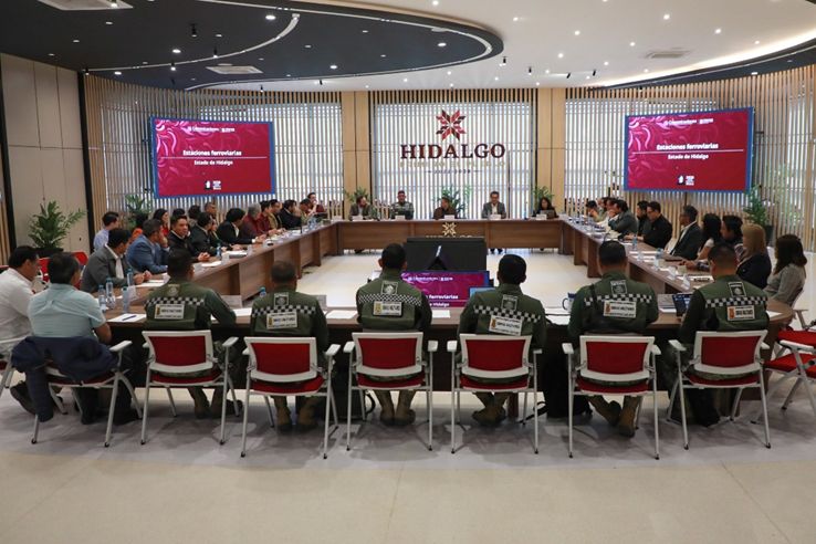 Pachuca, Hgo.- Para dar seguimiento a los avances de la construcción de los trenes AIFA-Pachuca y México-Querétaro, el gobernador Julio Menchaca Salazar encabezó una reunión interinstitucional con integrantes del Gobierno de México, del Agrupamiento de Ingenieros Felipe Ángeles, funcionarios del Estado de México, así como alcaldes y alcaldesas de ambas entidades federativas.
