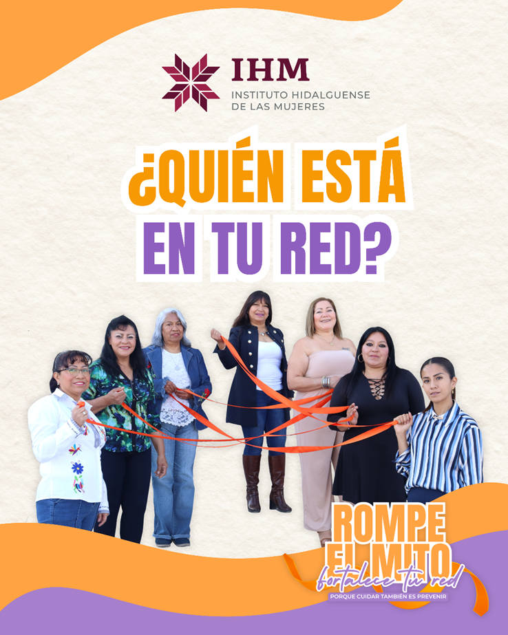 Pachuca, Hgo.- Con el lema “Porque prevenir también es cuidar”, el Instituto Hidalguense de las Mujeres (IHM) realizó la campaña de difusión “Rompe el mito, fortalece tu red”, con el objetivo de identificar las redes de apoyo en el ámbito familiar, social y comunitario, como una forma de enfrentar la violencia de género y desmantelar estereotipos, como la supuesta rivalidad femenina.