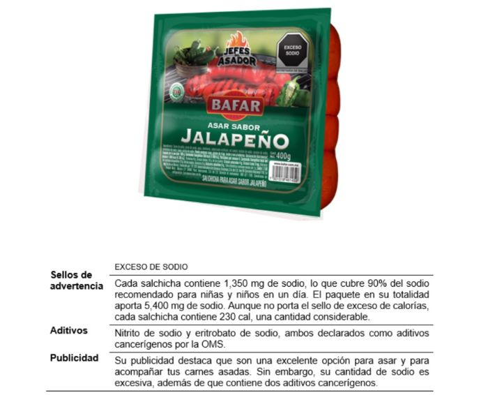 La organización ciudadana El Poder del Consumidor emitió una alerta sobre salchichas disponibles a la venta en el mercado mexicano, que contienen altos niveles de sodio y aditivos identificados como potencialmente cancerígenos.