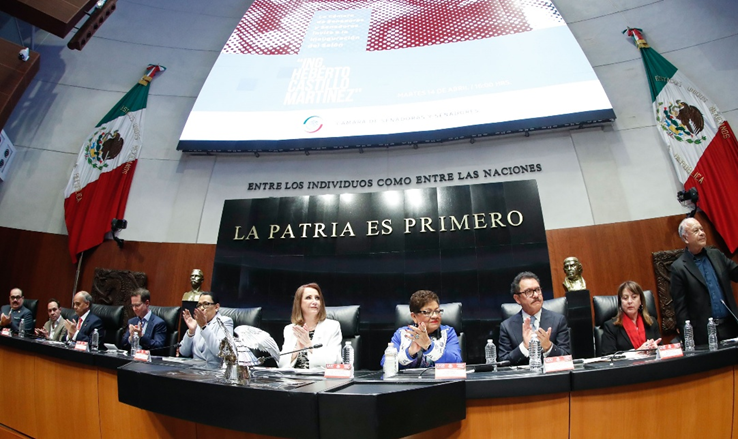En la mesa directiva, además de la anfitriona, tres mujeres con historia propia en la vida pública del país: en representación de la presidenta Claudia Sheinbaum, la secretaria de Gobernación, Rosa Icela Rodríguez; la fiscal general Ernestina Godoy; y la gobernadora de Morelos, Margarita González Saravia.