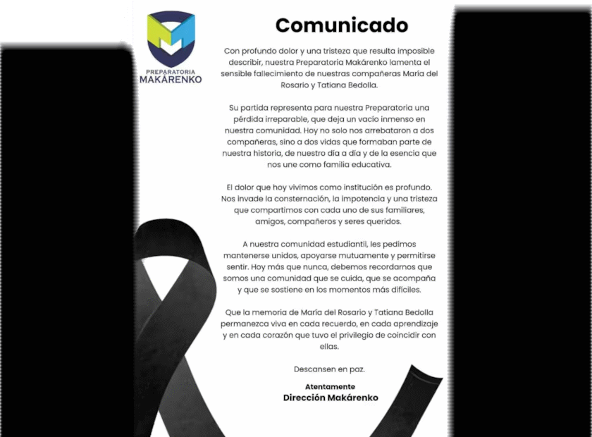 La preparatoria “Anton Makarenko” emitió un comunicado en el que expresó su pesar por el fallecimiento de las docentes María
