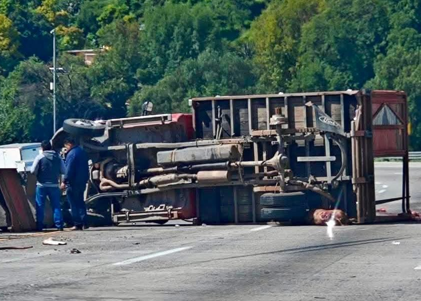 Brutal accidente entre un tráiler que impactó a una camioneta de tres y media toneladas con carga porcina y que alcanzó también un auto, dejó tres heridos y millonarios daños.