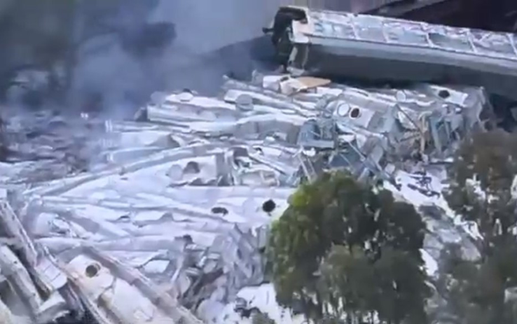 Continúan las labores para retirar los vagones dañados y escombros del tren que se incendió