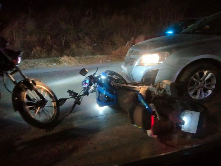 Policías y elementos de emergencias se presentaron el viernes por la noche en la carretera Tula-Jorobas, a la altura de donde se encuentra la gasolinera conocida como Param, donde un automóvil particular y una motocicleta se vieron involucrados en un hecho de tránsito.