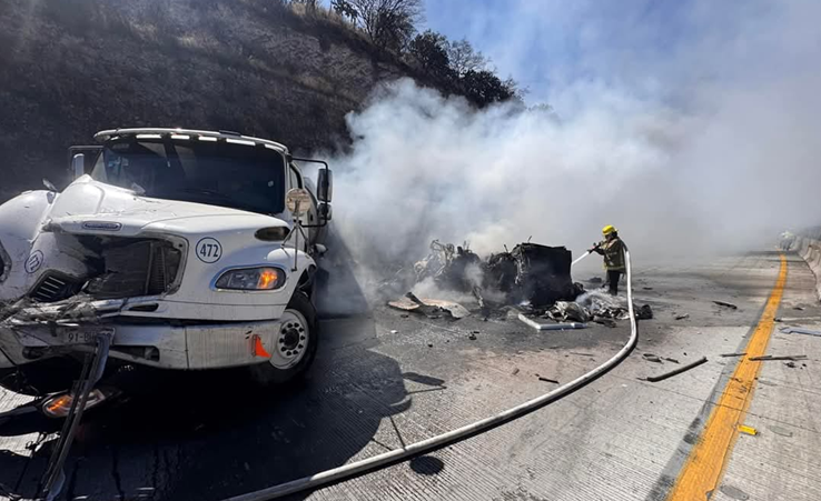 Encontronazo de 2 pesadas unidades en la México-Querétaro provocó llamaradas que dejaron severos daños materiales; la vialidad se vio interrumpida
