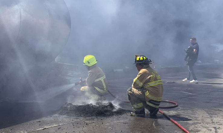 Los elementos de protección civil y bomberos se presentaron con una unidad prehospitalaria además de una unidad de comando, una pipa y otra más de rescate.