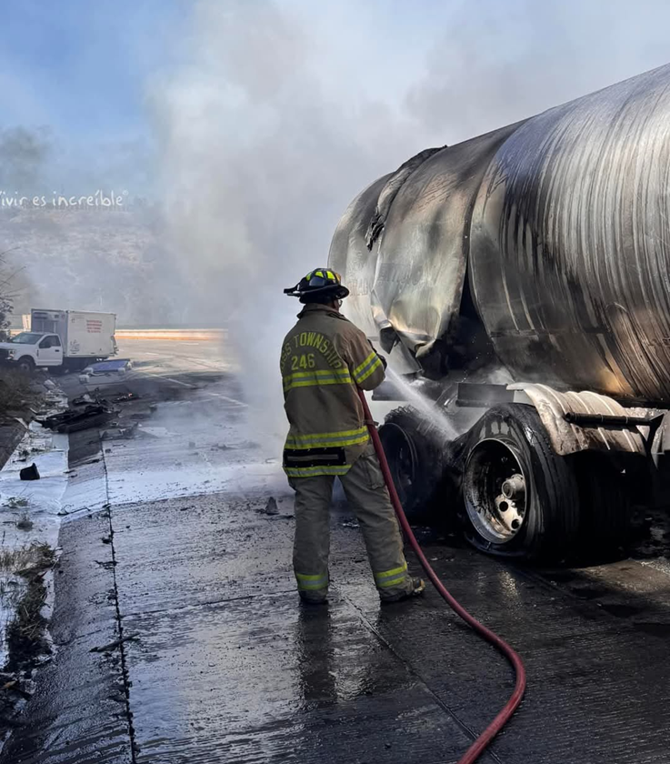 Las llamas que provocaron el incendio y las enormes columnas de humo negro paralizaron la circulación vehicular de la autopista México-Querétaro donde el personal de la guardia nacional, policía de seguridad pública del estado de Hidalgo y oficiales de seguridad pública y tránsito municipal así como de Capufe acordonaron como medida de seguridad luego de que encontraron dos pesadas unidades que chocaron.