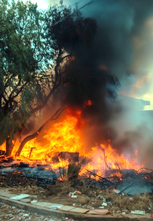 Los elementos de protección civil y bomberos fueron movilizados mediante una llamada telefónica y al llegar al predio realizaron el trabajo para sofocar las llamas que fueron quemando y causando daños en el material que estaba en este predio donde había de todo.