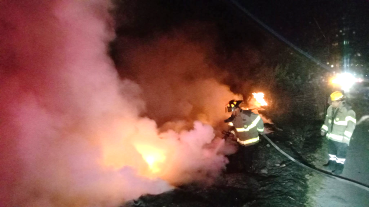 Elementos de protección civil y bomberos se presentaron la noche del domingo en un predio ubicado en la comunidad de San Pedro Alpuyeca, municipio de Tula de Allende, donde atendieron un incendio de llantas.