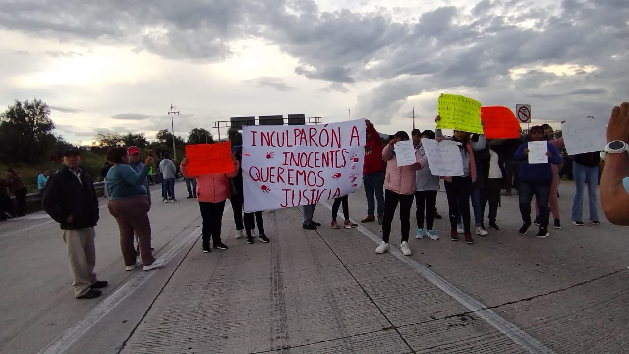 Manifestación y bloqueo en el Arco Norte para exigir la liberación de dos detenidos por el enfrentamiento entre policías y huachicoleros en Tlaxcoapan; afirman que son inocentes