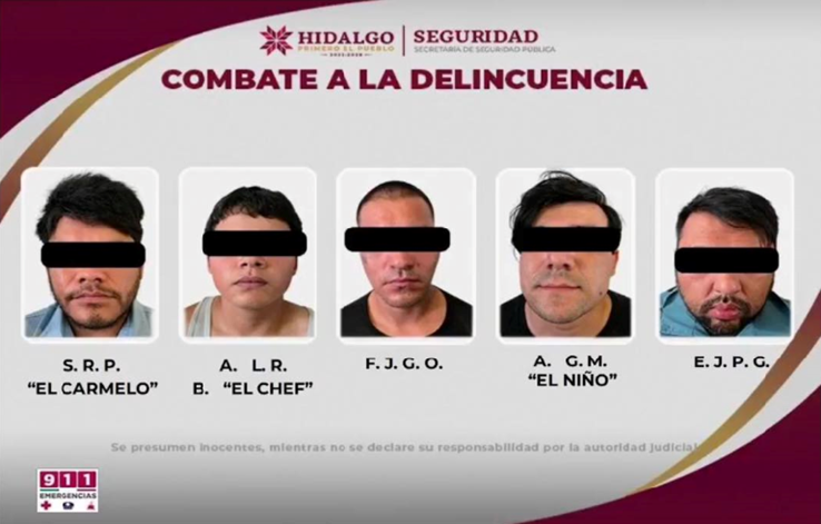 En su momento el mandato judicial lo ejecuto el personal de la procuraduría en coordinación con oficiales de la secretaria de seguridad pública del estado de Hidalgo y con personal del ejército mexicano, logrando detener a los 5 hombres identificados con iniciales D. G. R., F. J. G., O. S. R. P., A. G. M. B. y E. J. P. G., que tras quedar a disposición del ministerio público fueron presentados con el juez de control.