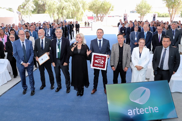 Durante el evento, Diana León Cuadra, titular del Sector de Energía de la Secretaría de Economía federal, entregó simbólicamente a Arteche el certificado ‘Hecho en México’, que reconoce su compromiso con la calidad, responsabilidad e innovación tecnológica.