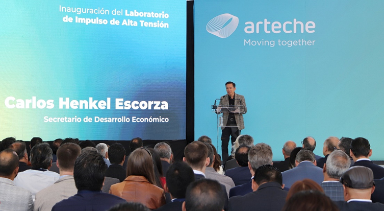 Tepeji del Río, Hgo.- En representación del gobernador Julio Menchaca Salazar, el secretario de Desarrollo Económico, Carlos Henkel Escorza, asistió a la inauguración del Laboratorio de Impulso de Alta Tensión de la empresa española Arteche, líder global en soluciones tecnológicas para el sector energético.